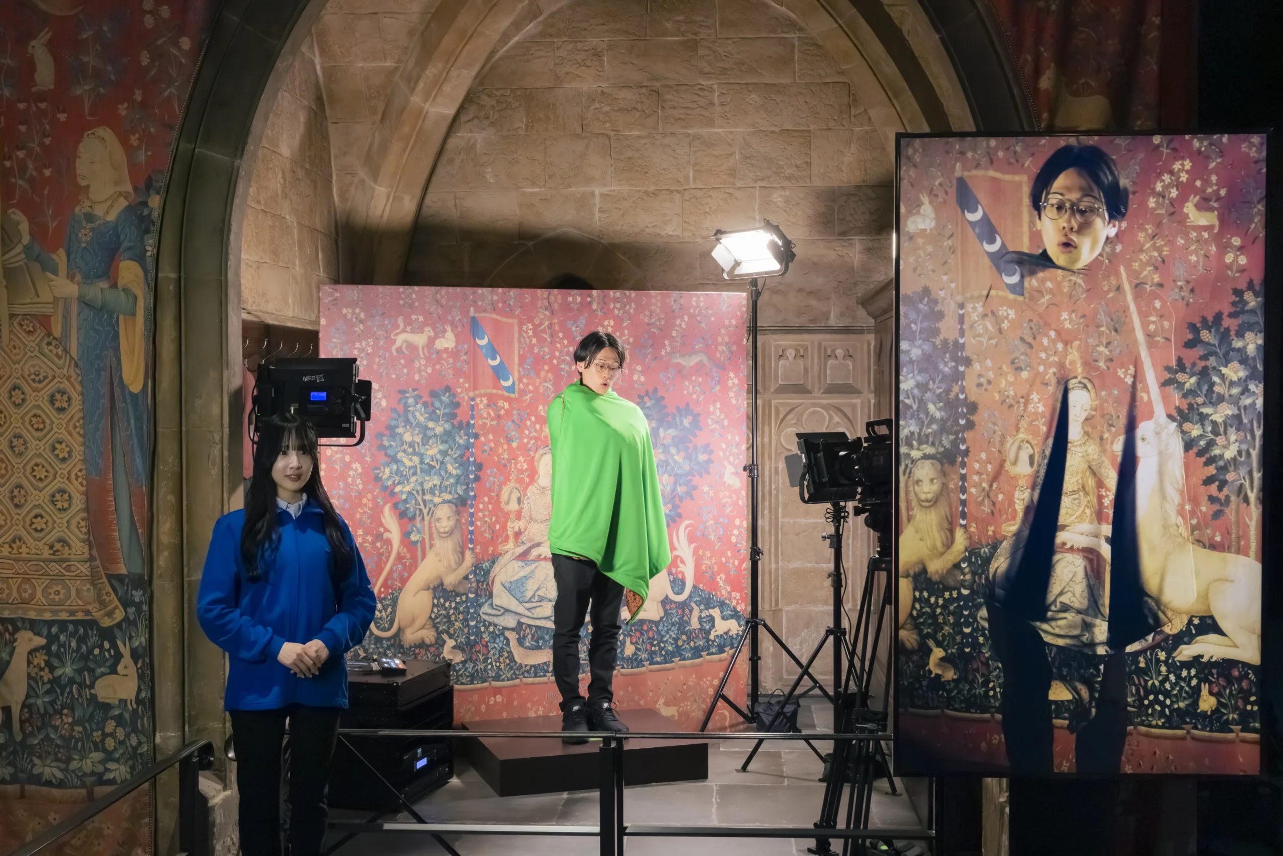 Several different cloaks were made, including a version with a green fabric lining which allowed the Visual Effects Department to make Harry and his friends invisible in post-production.