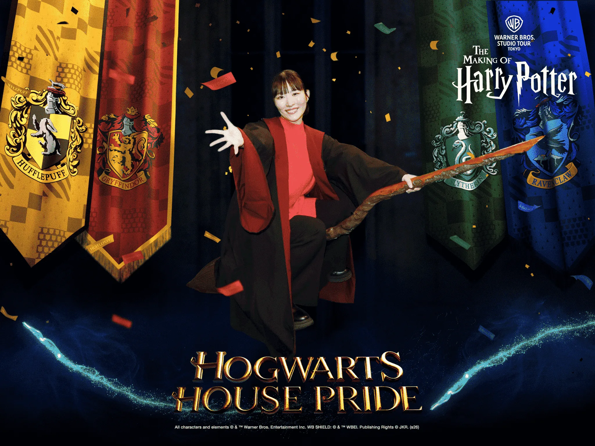 ※2026年1月17日(土)~2026年3月15日(日)の期間中の「ほうきエクスペリエンス」パッケージをご購入いただき、ご体験いただくと、通常背景の4種類に加え「ホグワーツ ハウスプライド」限定背景1種類を含む、合計5種類の背景をお楽しみいただけます。